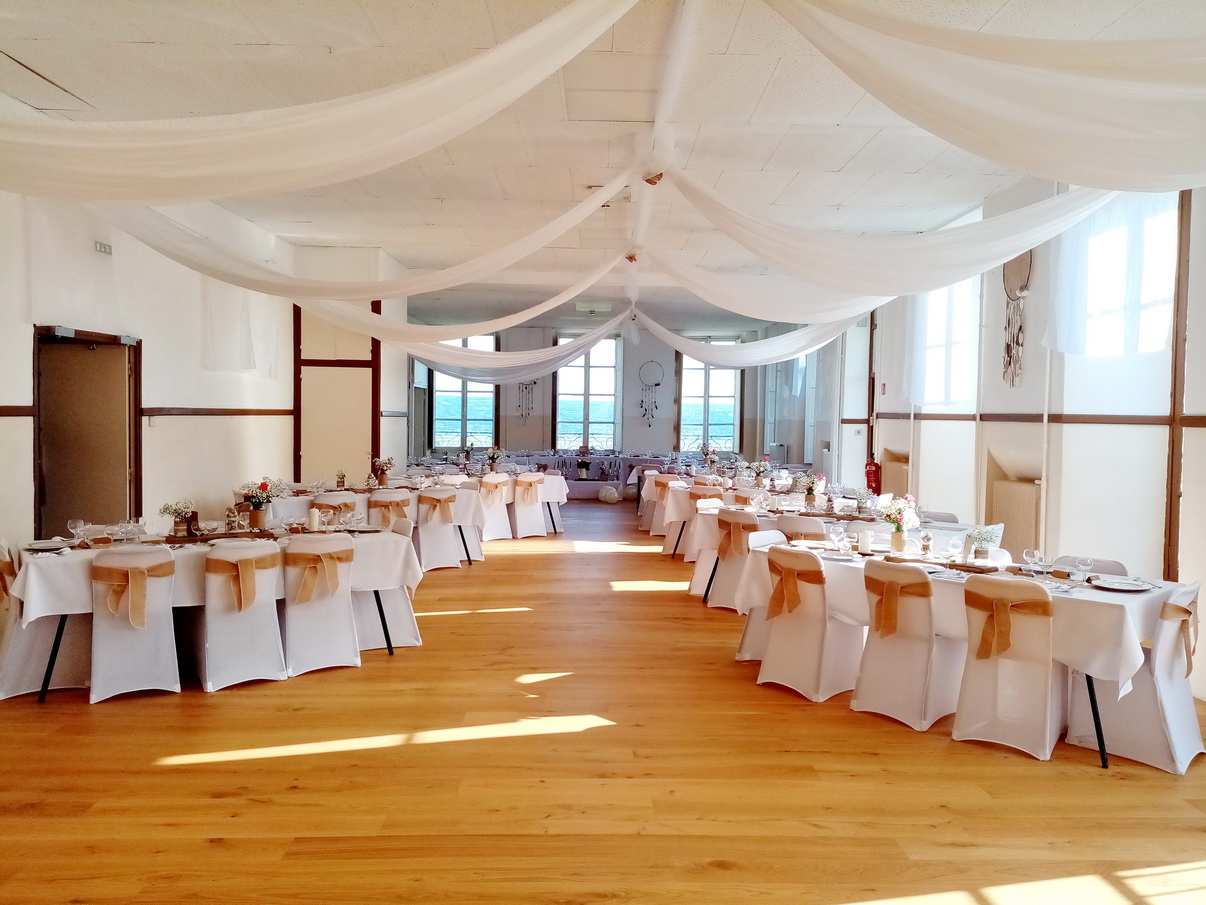 Salle de banquet 163m² (22,37 x 7,30, h=3,32m)150 personnes assises